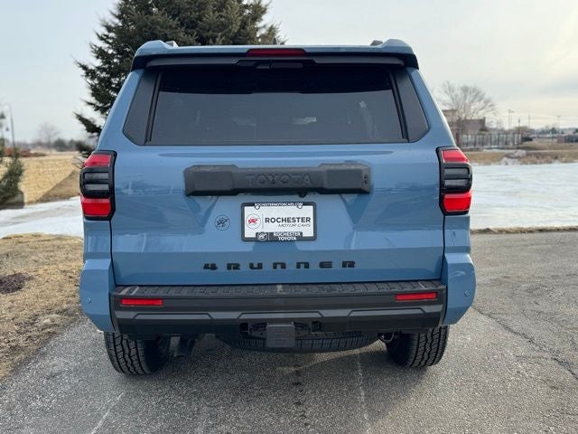 2026 Heritage Blue Toyota 4Runner 2.4L 4-Cylinder TRD Off-Road Premium 4WD Collision Warning System, Adaptive Cruise Control, Leather Seats, Heated and Cooled Seats, Blind-Spot Monitors, Lane Keeping Assist, Touchscreen Controls, Backup Camera, Apple CarPlay, Android Auto, Bluetooth® Hands Free, 4WD, Sunroof/Moonroof, Portable Audio Connection, Sirius Radio, Cruise Control, Multizone Climate Control, Safety Connect, 15 Speakers, 4-Wheel Disc Brakes, ABS brakes, Air Conditioning, Alloy wheels, AM/FM radio: SiriusXM, Apple CarPlay/Android Auto, Auto High-beam Headlights, Automatic temperature control, Brake assist, Electronic Stability Control, Emergency communication system: Safety Connect (1-year trial), Exterior Parking Camera Rear, Front dual zone A/C, Front fog lights, Heated and Ventilated Front Bucket Seats, Heated door mirrors, Heated front seats, Heated steering wheel, Illuminated entry, Intelligent Inside Rear View Mirror, Low tire pressure warning, Memory seat, Moonroof, Navigation System, Power driver seat, Power passenger seat, Power steering, Power windows, Radio: 14 Audio, Rear window defroster, Rear window wiper, Remote keyless entry, SofTex Seat Trim, Speed control, Speed-sensing steering, Steering wheel mounted audio controls, Traction control, TRD Offroad Premium, Turn signal indicator mirrors, Variably intermittent wipers, Ventilated front seats, Wheels: 18 Matte-Black Painted.