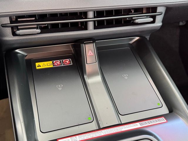 - Center console with covered storage compartment, two cup holders, two Qi-compatible wireless chargers and front lower storage tray
