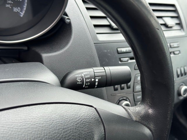 2013 Black Mica Mazda Mazda3 i SV This Mazda Mazda3 has many features and is well equipped including, Local Trade, Cruise Control, 4-Wheel Disc Brakes, ABS brakes, CD player, Cloth Seat Trim, Convenience Package, Outside temperature display, Power Door Locks w/2-Stage Unlocking, Power door mirrors, Remote Keyless Illuminated Entry System, Split folding rear seat, Steering wheel mounted audio controls, Tachometer, Tilt steering wheel, Traction control.
