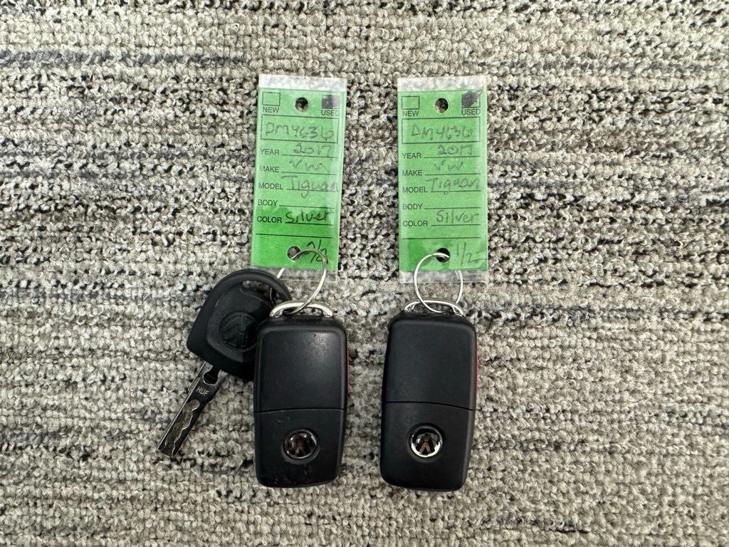 2017 Reflex Silver Metallic Volkswagen Tiguan 2.0T S 4Motion This Volkswagen Tiguan has many features and is well equipped including, Local Trade, New Battery, AWD, New Front Brake Pads/Rotors, ABS brakes, Air Conditioning, Power door mirrors, Power driver seat, Power steering, Power windows, Radio: AM/FM/HD/CD w/USB & Aux-In, Remote keyless entry, Steering wheel mounted audio controls.