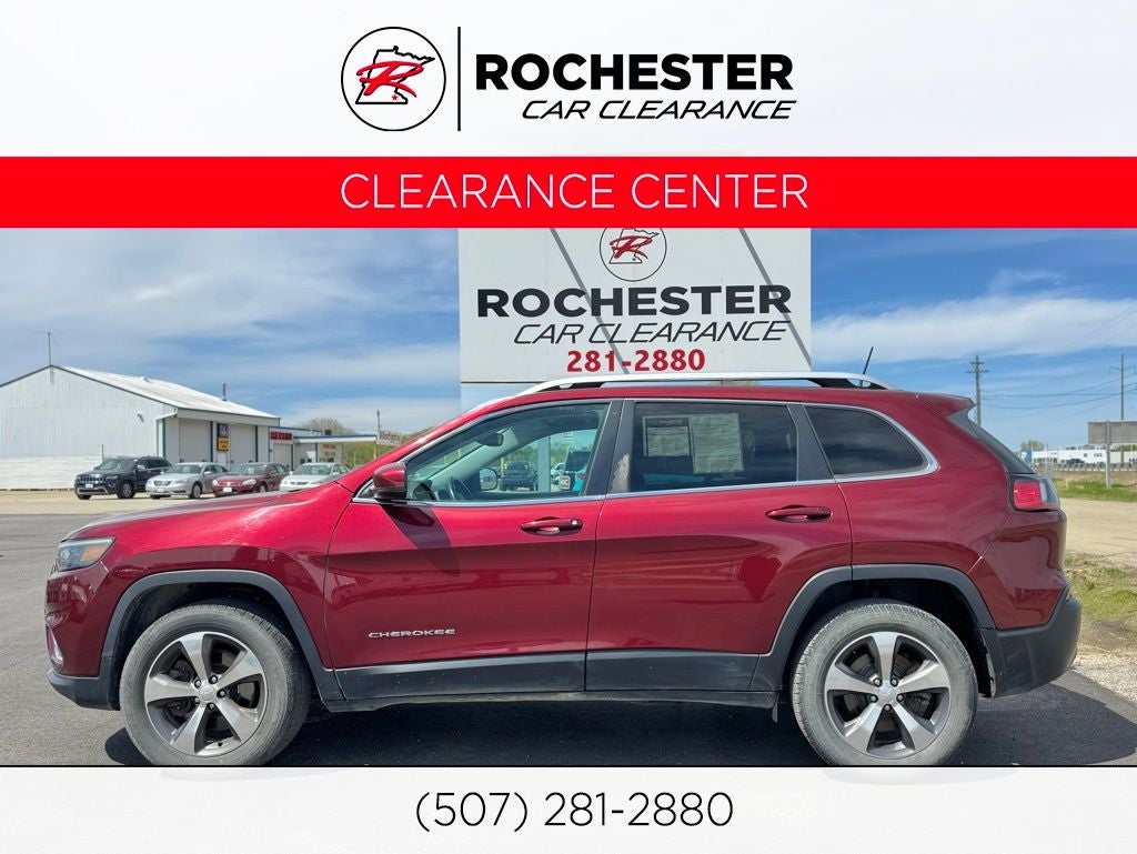 Meets our Rigorous Inspection and Reconditioning Standards! Cherokee Limited Velvet Red Pearlcoat Clean CARFAX. This Jeep Cherokee has many features and is well equipped including, Backup Camera, Automatic Headlights, Apple CarPlay, Android Auto, Apple Carplay and Android Auto Compatible, Voice Recognition, Bluetooth® Hands-Free, 4WD, Leather Seats, 8.4 Touchscreen Display, 9 Amplified Speakers w/Subwoofer (DISC), Apple CarPlay, Apple CarPlay/Android Auto, Delay-off headlights, Fully automatic headlights, Heated front seats, Heated steering wheel, ParkView Rear Back-Up Camera, Power Liftgate, Quick Order Package 26G, SiriusXM Satellite Radio. 19/27 City/Highway MPG