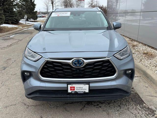 Drive with confidence in this Certified 2021 Toyota Highlander Hybrid Limited AWD, a three-row hybrid SUV delivering an impressive 35/34 City/Highway MPG and all-weather AWD capability. With a Clean CARFAX and refined Moon Dust exterior, this Highlander offers leather-trimmed seating, heated and ventilated front seats, a heated steering wheel, memory drivers seat, and versatile 2nd- and 3rd-row seating for family-ready flexibility. Advanced safety features include Collision Warning System, Adaptive Cruise Control, Lane Departure Warning with Lane Keeping Assist, Blind-Spot Monitors, Rear Parking Sensors, and a Panoramic View Monitor with Birds Eye View on a 12.3-inch touchscreen. Stay connected with Apple CarPlay, Android Auto, Bluetooth® Hands Free, SiriusXM, Dynamic Navigation, and JBL Premium Audio, while enjoying convenience features like Keyless Access with Push Button Start, Power Liftgate, Sunroof/Moonroof, Multizone Climate Control, and Safety Connect. This 2021 Toyota Highlander Hybrid Limited AWD combines hybrid efficiency, premium comfort, and advanced driver-assist technology in one exceptional SUV.