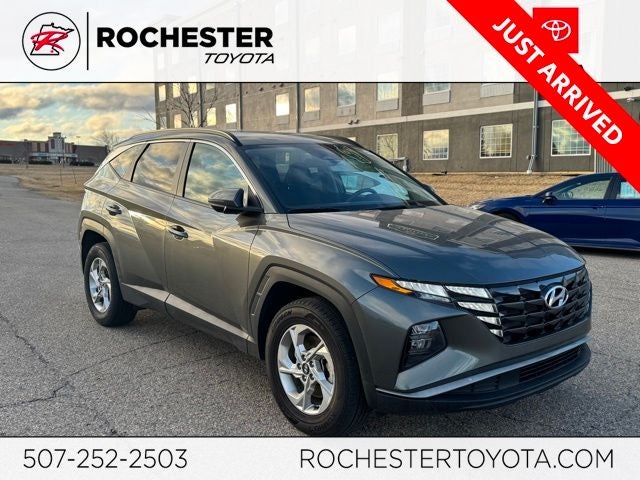 The 2023 Hyundai Tucson SEL AWD is a versatile and well-equipped compact SUV designed to deliver comfort, technology, and confidence in all driving conditions. This CARFAX One-Owner, Clean CARFAX Tucson features All-Wheel Drive for enhanced traction and capability, along with advanced safety technologies such as Forward Collision Warning, Blind-Spot Monitoring, Lane Keeping Assist, Electronic Stability Control, and a rear backup camera to help keep you protected on every drive. Inside, the cabin offers heated front seats, a power driver seat, stain and odor resistant cloth seating, and dual-purpose touchscreen controls with Apple CarPlay, Android Auto, Bluetooth® hands-free connectivity, SiriusXM capability, and a premium AM/FM/HD audio system for seamless connectivity and entertainment. Additional highlights include remote keyless entry, power liftgate, cruise control, automatic high-beam headlights, heated mirrors, and stylish 17-inch alloy wheels, while Hyundai Blue Link Connected Car Service (3-year complimentary subscription) adds extra convenience and peace of mind. Finished in Amazon Gray and delivering an efficient 23/28 city/highway MPG, this 2023 Hyundai Tucson SEL AWD is a recent arrival that blends modern design, smart technology, and everyday practicality - making it an excellent choice for drivers searching for a reliable and feature-packed SUV.