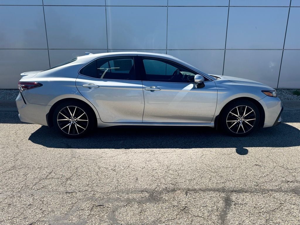 This 2024 Toyota Camry SE AWD in striking Celestial Silver Metallic delivers a perfect blend of sporty performance, all-weather capability, and advanced technology, making it a standout choice for drivers seeking reliability and style. Equipped with AWD and an efficient 25/34 City/Highway MPG, this Camry features a comprehensive suite of safety systems including Collision Warning System, Adaptive Cruise Control, Lane Keeping Assist, Blind-Spot Monitors, and a Backup Camera for added confidence on every drive. Inside, enjoy premium comfort with Multi-Stage Heated Front Seats, a Heated Steering Wheel, Sport SofTex Seat Trim with Fabric Inserts, dual-zone automatic climate control, and a Power Tilt/Slide Moonroof. Stay connected with a modern infotainment system featuring a large touchscreen display, Apple CarPlay, Android Auto, Bluetooth® Hands Free, SiriusXM radio, and Smart Key System with Push Button Start. Additional highlights include the Cold Weather Package, Convenience Package, and Blackout Package (TMS), along with 18 alloy wheels, HomeLink, heated exterior mirrors, rear dual USB power ports, and Toyota Safety Connect with a 1-year trial for peace of mind. With a CARFAX One-Owner and Clean CARFAX report, this well-equipped Camry SE AWD is an exceptional value for anyone searching for a feature-packed, dependable midsize sedan.