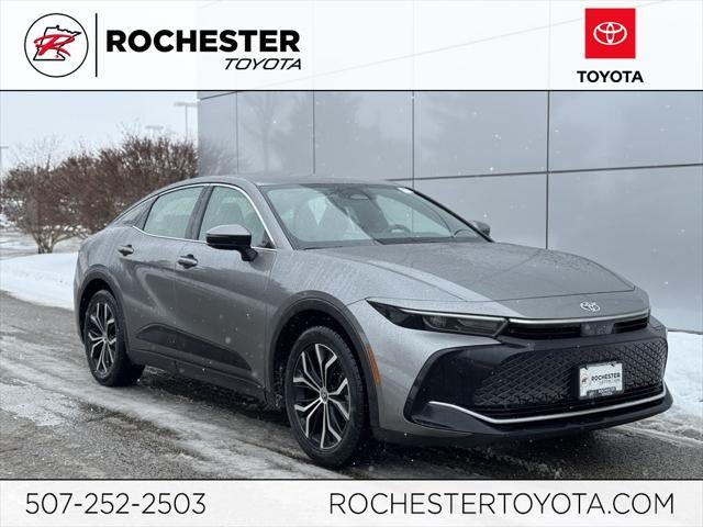 Elevate your daily drive with this CARFAX One-Owner 2024 Toyota Crown XLE AWD, a stylish and efficient sedan designed for comfort, confidence, and all-weather capability. Finished in striking Heavy Metal, this Crown delivers impressive 42/41 city/highway MPG while providing sure-footed AWD performance. The well-equipped XLE Package surrounds you with premium features like heated 8-way adjustable front seats, fabric w/SofTex seat trim, and dual-zone automatic climate control for year-round comfort. Stay seamlessly connected through Apple CarPlay, Android Auto, Bluetooth® hands-free, and SiriusXM, all controlled through intuitive touchscreen controls. Drive with added peace of mind thanks to advanced safety tech including a Collision Warning System, Adaptive Cruise Control, Blind-Spot Monitors, Lane Keeping Assist, and an Exterior Parking Camera Rear. Additional highlights include Dynamic Navigation (3-year trial) with Premium Audio w/Navigation, HomeLink garage door transmitter, 19-inch multi-spoke machined 2-tone alloy wheels, and Safety Connect - making this 2024 Crown XLE AWD an outstanding choice for drivers seeking efficiency, technology, and upscale Toyota comfort.