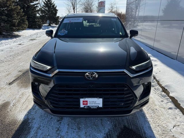 The Certified 2025 Toyota Grand Highlander Limited AWD offers premium comfort, advanced technology, and versatile three-row capability. This CARFAX One-Owner Grand Highlander features all-wheel drive, leather seats, heated and ventilated front seats, heated rear seats, a heated steering wheel, and a panoramic roof for an upscale driving experience. Stay connected with the 12.3 Toyota Audio Multimedia system with JBL Premium Audio, Apple CarPlay, Android Auto, Bluetooth®, SiriusXM, and Drive Connect Cloud Navigation, while keyless entry with push-button start, a power liftgate, and memory seating add everyday convenience. Safety comes standard with Collision Warning System, Adaptive Cruise Control, Blind-Spot Monitors, Lane Keeping Assist, a backup camera, and Toyota Safety Connect, making this Midnight Black Metallic 2025 Toyota Grand Highlander Limited AWD a well-equipped and family-ready SUV.